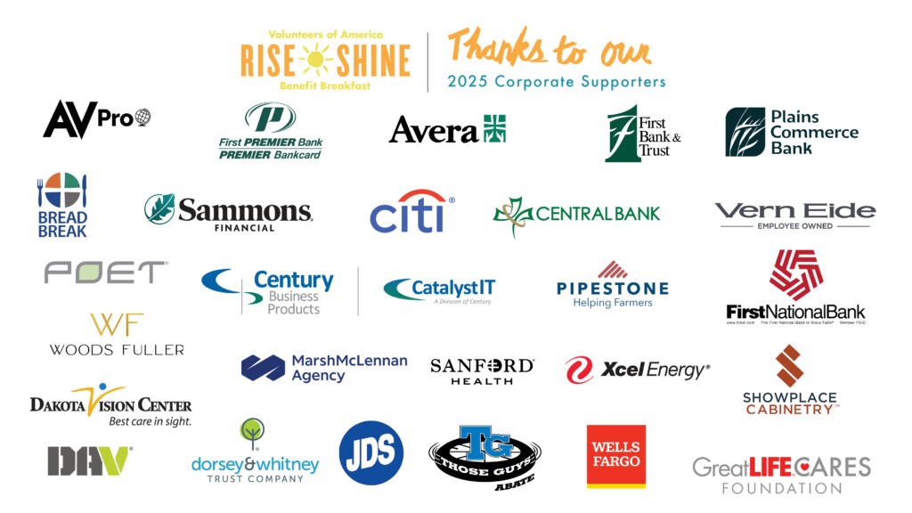 Volunteers of America, Dakotas- Rise & Shine Benefit Breakfast is an opportunity for individuals, local businesses, and community leaders to come together in celebration of our mission. With the support of friends like you, along with the dedication of our staff, VOA Dakotas is impacting the lives of people in our community.